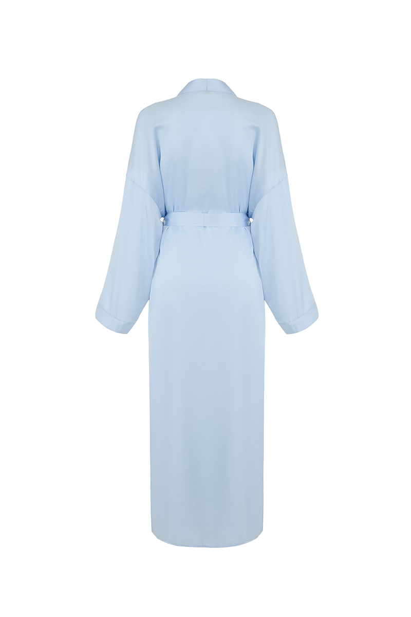 Кимоно Home голубое — нежное и воздушное, создано для расслабленных домашних образов. Легко надевается поверх топа или белья, добавляя стиль и уют.