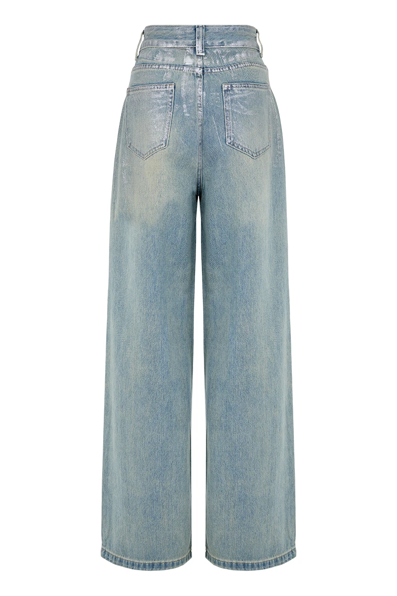 Джинсы J-003 с шиммером — это сочетание свободного кроя и модного блеска. Легкий переливающийся эффект добавляет уникальности и делает их идеальным выбором для различных образов.