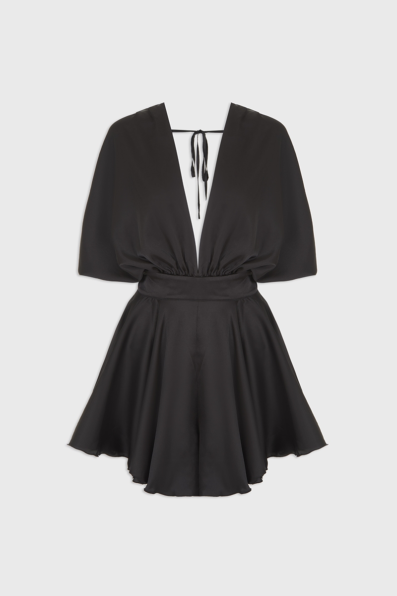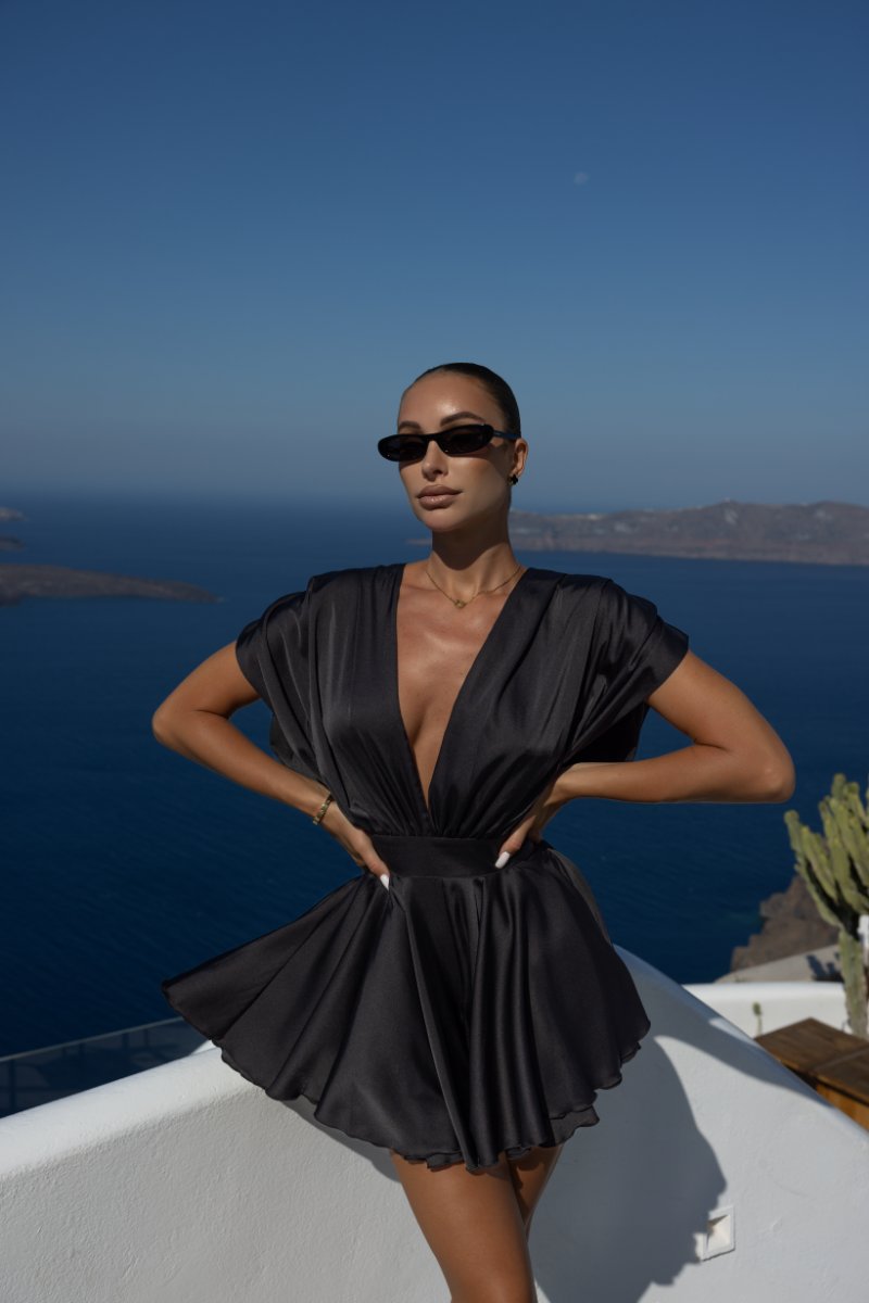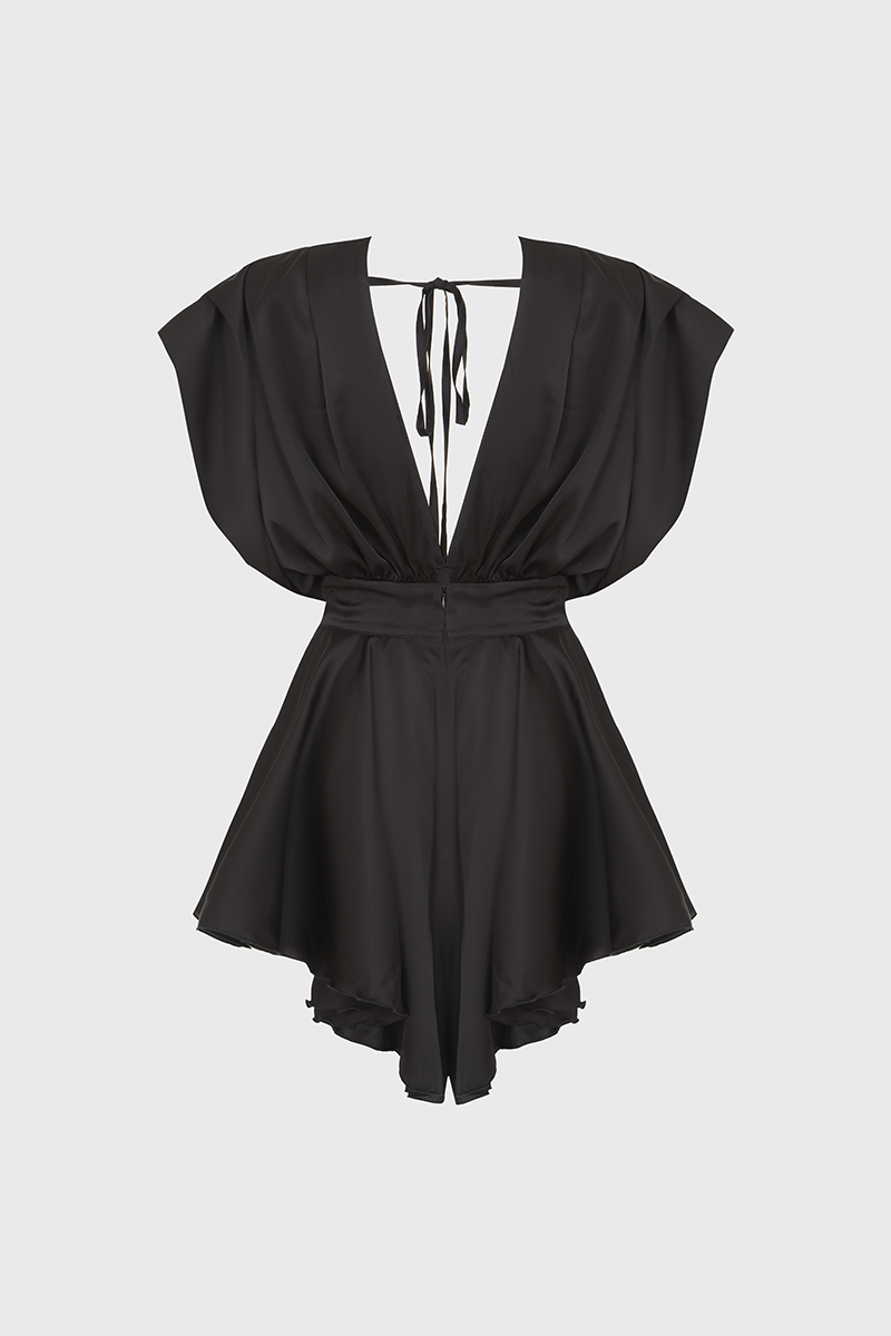 Черный комбинезон Monika — универсальный выбор для стильных выходов. Акцент на талии создаёт женственный силуэт, а глубокий вырез добавляет образу дерзости.