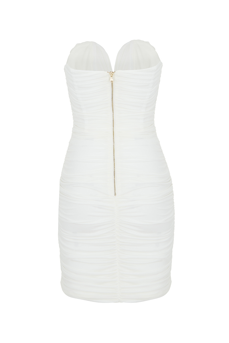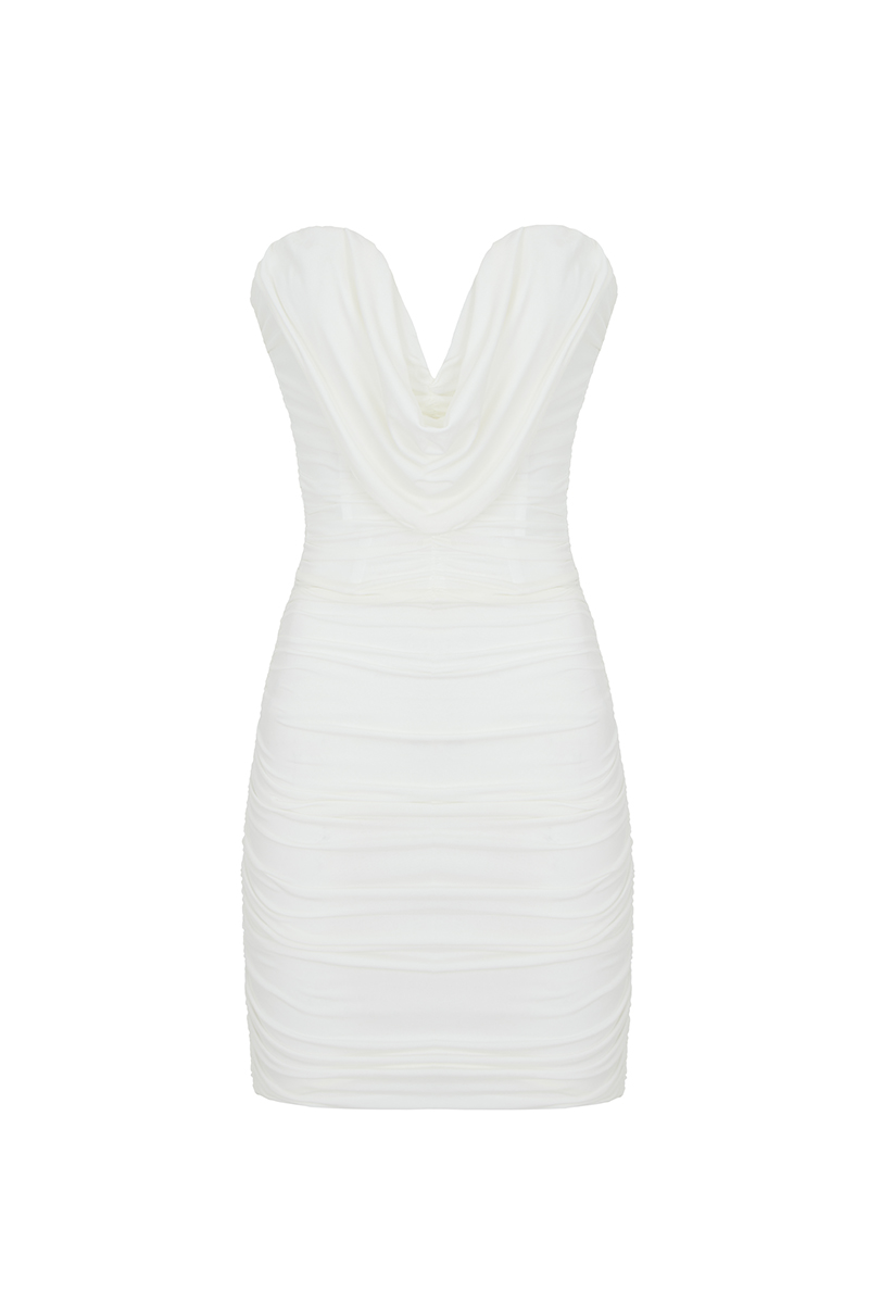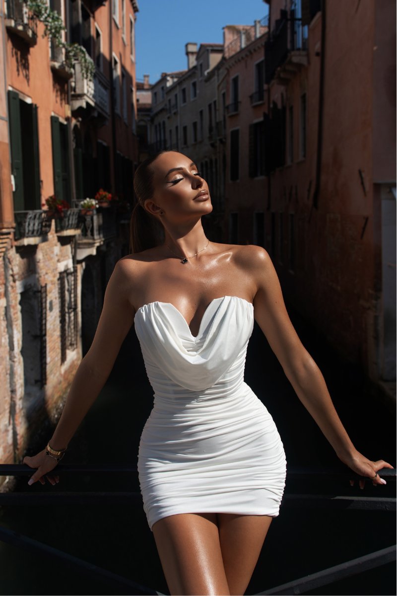 Платье Naomi молочное — это утончённая классика с лёгким акцентом на романтику. Прямой крой, открытые плечи и мягкий оттенок создают образ, в котором легко чувствовать себя и женственной, и уверенной. Идеально для особого случая или свидания, когда хочется быть в центре внимания без лишнего пафоса.