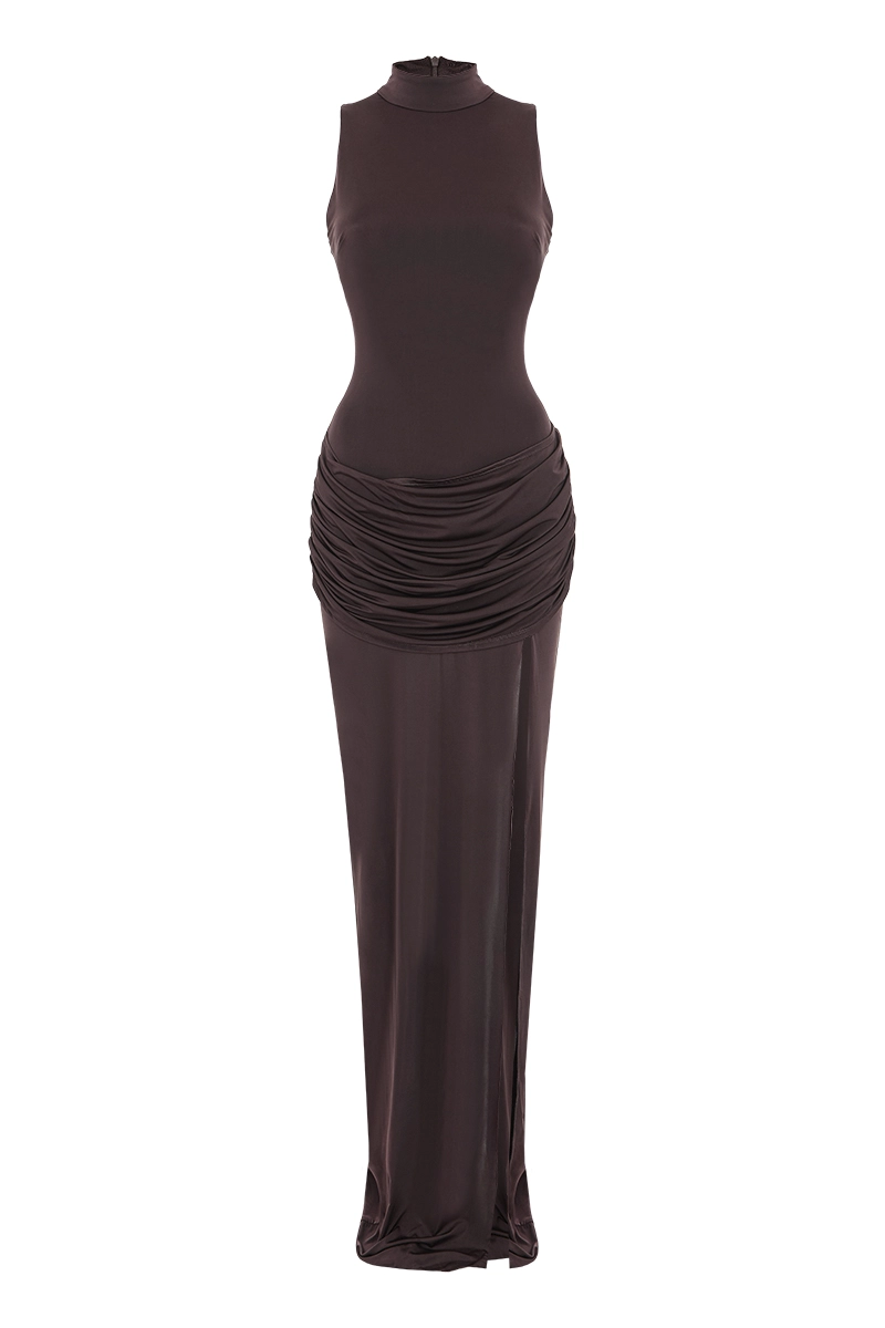 Платье Adriana в шоколадном цвете — женственная модель с элегантным силуэтом и глубоким благородным оттенком. Идеально подойдёт для вечерних выходов и особых случаев, подчёркивая фигуру и добавляя образу выразительности.