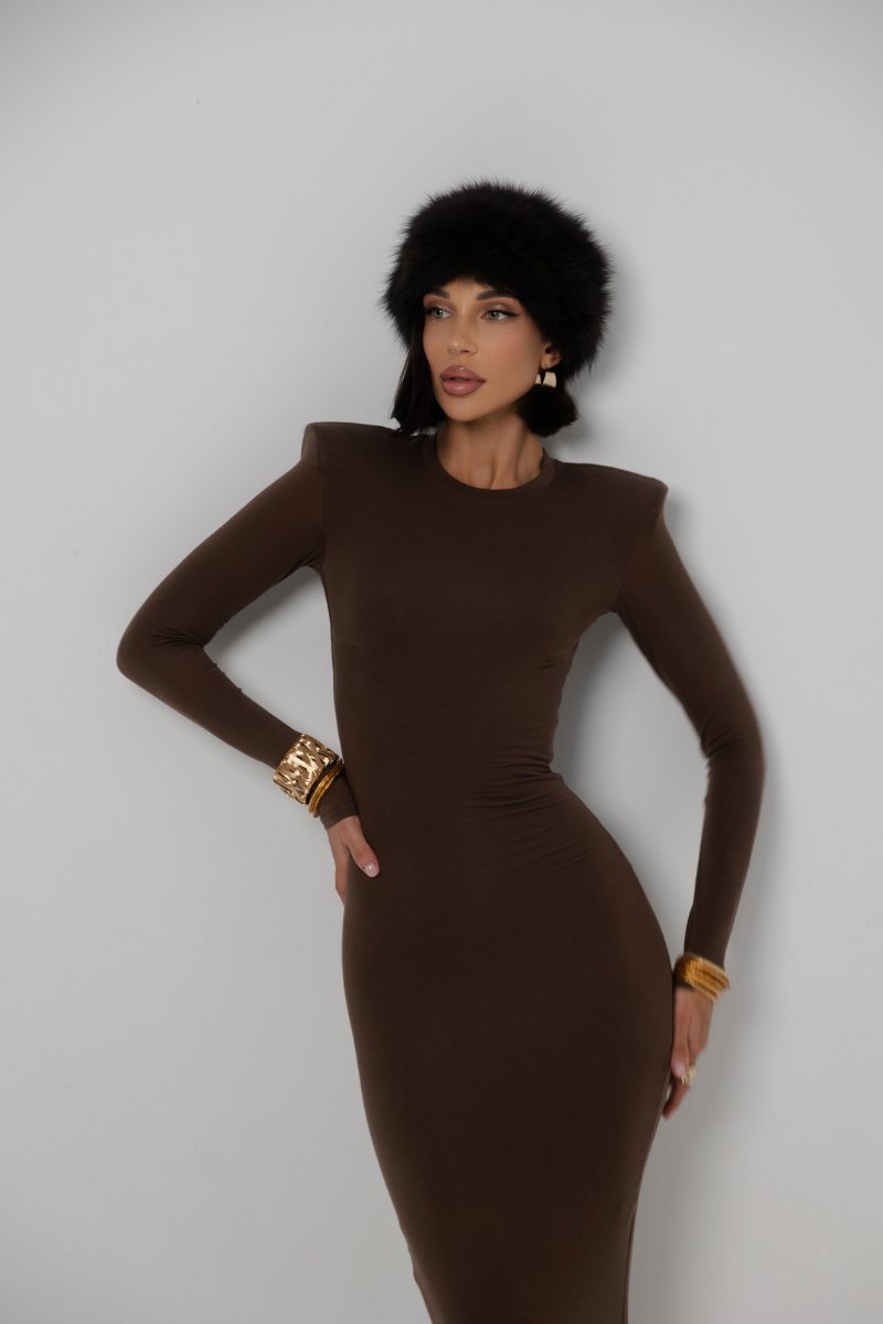 Платье Ariel шоколадного цвета — элегантный выбор для особых случаев. Оно подчеркивает женственность благодаря утонченному крою и мягкой ткани, которая красиво драпируется по фигуре.