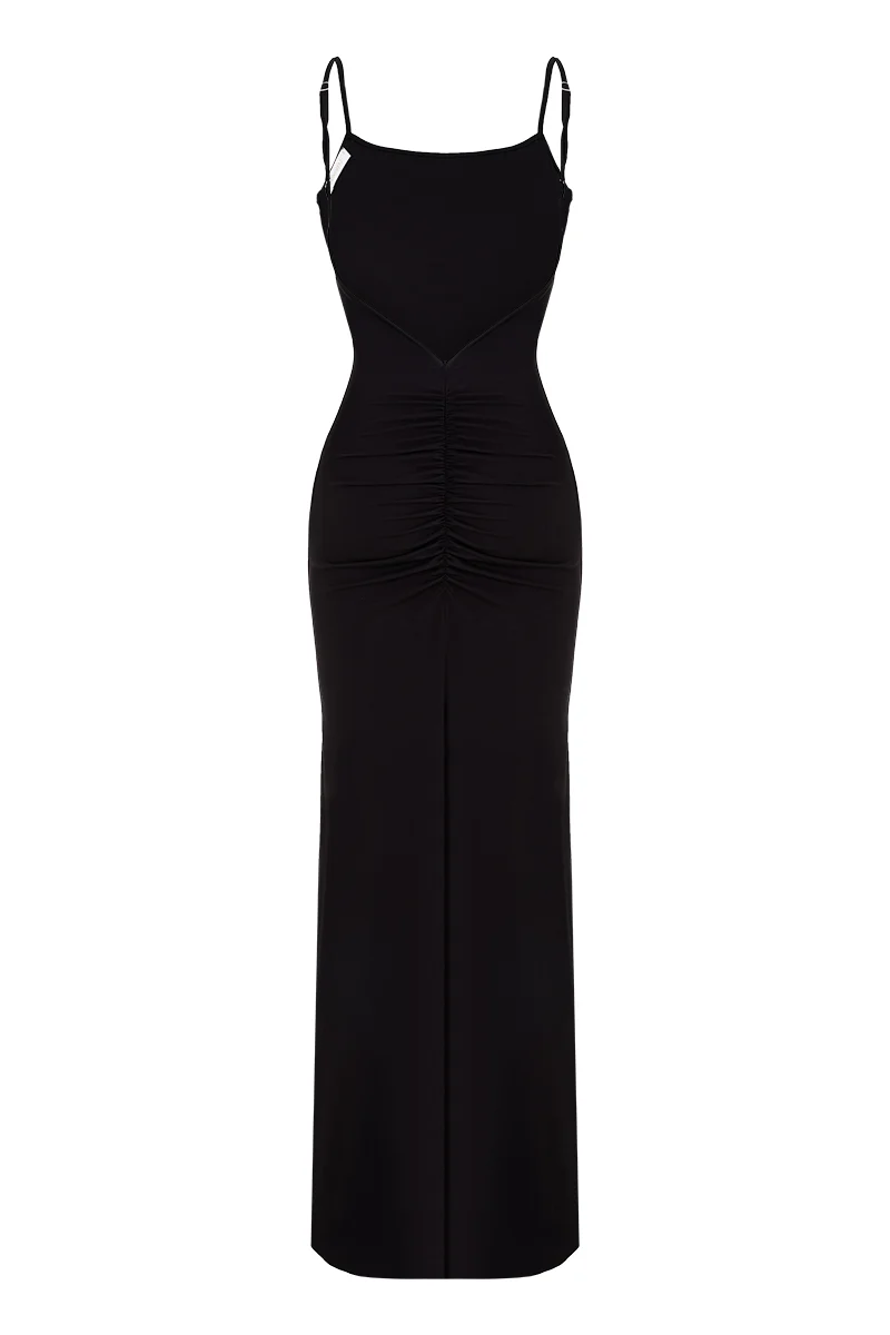 Платье Joly чёрное — женственное, минималистичное и соблазнительное. Прямой силуэт красиво ложится по фигуре, а глубокий вырез на спине добавляет пикантности образу. Идеальный выбор для вечерних выходов и особых случаев.