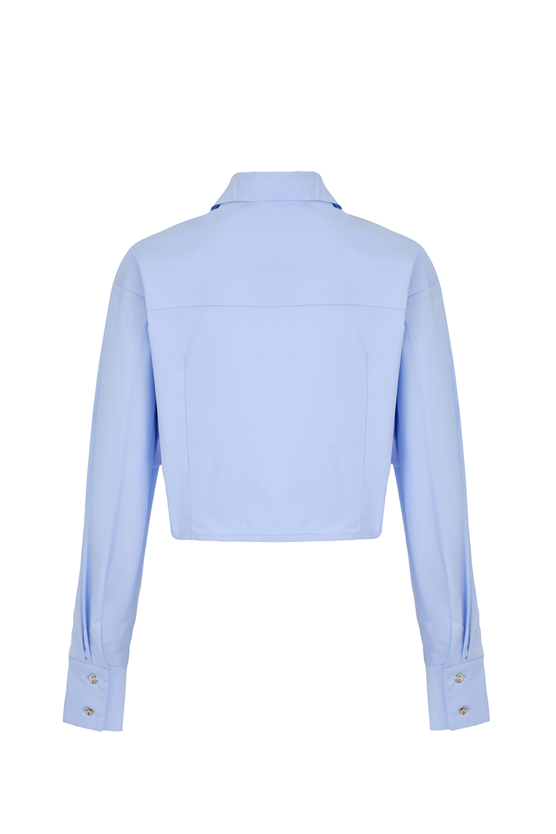 Рубашка Monsheri голубая – свободная и лёгкая, с классическим кроем и нежным голубым оттенком. Подходит для базовых и стильных повседневных образов.