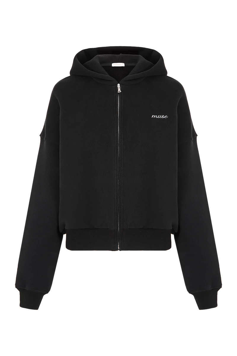 Толстовка Muse черная — стильная и комфортная вещь для повседневных образов. Простой и универсальный дизайн с мягким внутренним слоем подарит тепло и уют в холодное время года. Легко сочетать с джинсами или спортивными брюками для создания современного, расслабленного стиля.