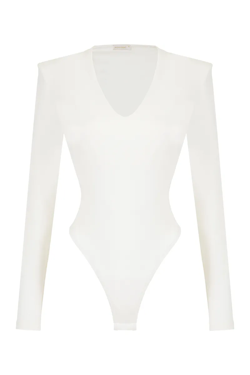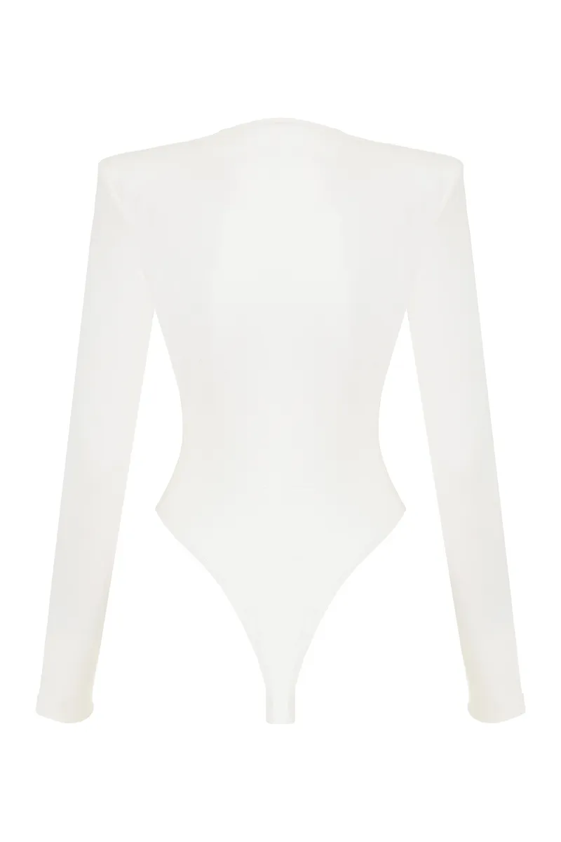 Боди Candy white — стильное и лаконичное, с глубоким вырезом и длинными рукавами. Подходит для любого случая.