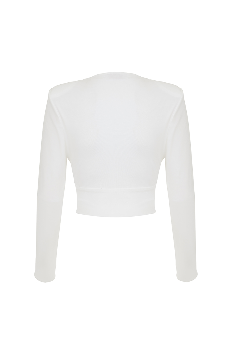 Топ Jazy молочный – отличный укороченный топ. Отлично подчёркивает фигуру и легко комбинируется с брюками, юбками и шортами.