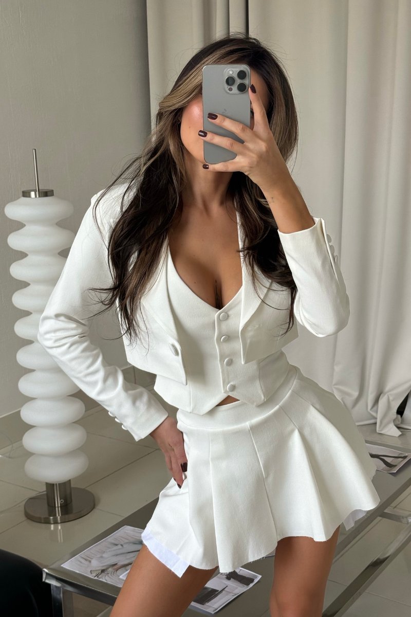 За счет стильного дизайна, в котором идеально балансируют практичность и утонченность, юбка-шорты становится универсальным элементом гардероба. Модель гармонична как в повседневном стиле, так и в образах для особых случаев. Особенно эффектно белая юбка-шорты будет смотреться в дополнении жилета и жакета в тон.