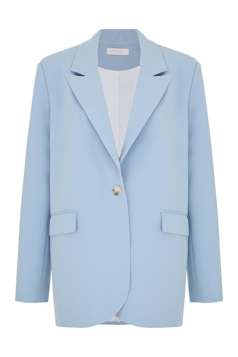 Голубой жакет “Samantha” сочетает в себе классический стиль и современную элегантность. Свободный крой и мягкий оттенок создают универсальный элемент гардероба, который подойдет для любого случая.