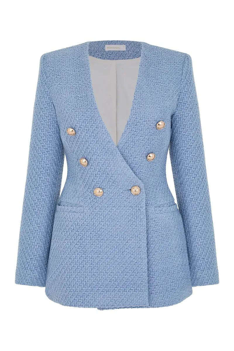 Голубой жакет Florence выполнен из твида, отличается лаконичным кроем и изысканным дизайном. Он добавит элегантности любому образу и подойдет для создания стильных комплектов на каждый день.