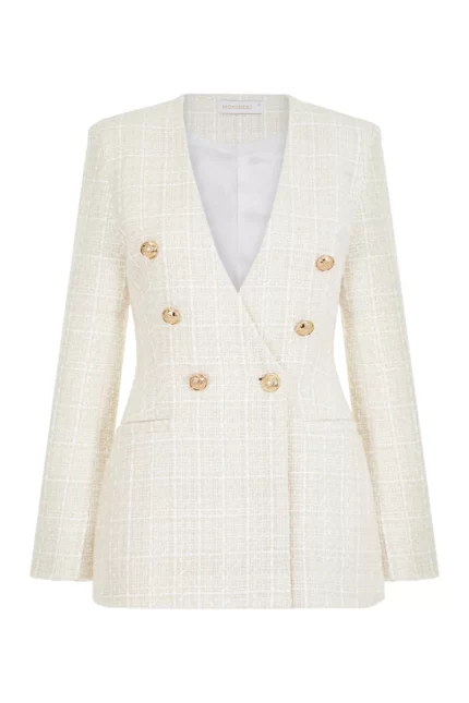Жакет должен хорошо держать форму. Он не обязан быть жестким, но должен сохранять линию плеч и аккуратно фиксировать силуэт. В MONSHERI мы подбираем материалы так, чтобы изделие оставалось легким, дышащим и при этом не теряло вид после ежедневной носки.